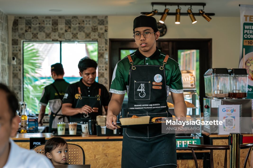 Pekerja X-10 Coffee menyiapkan air minuman pelanggan ketika tinjauan MalaysiaGazette (MG) Perak di Manjoi, Ipoh. Foto ANIQ NABILAFIQ ANUAR.